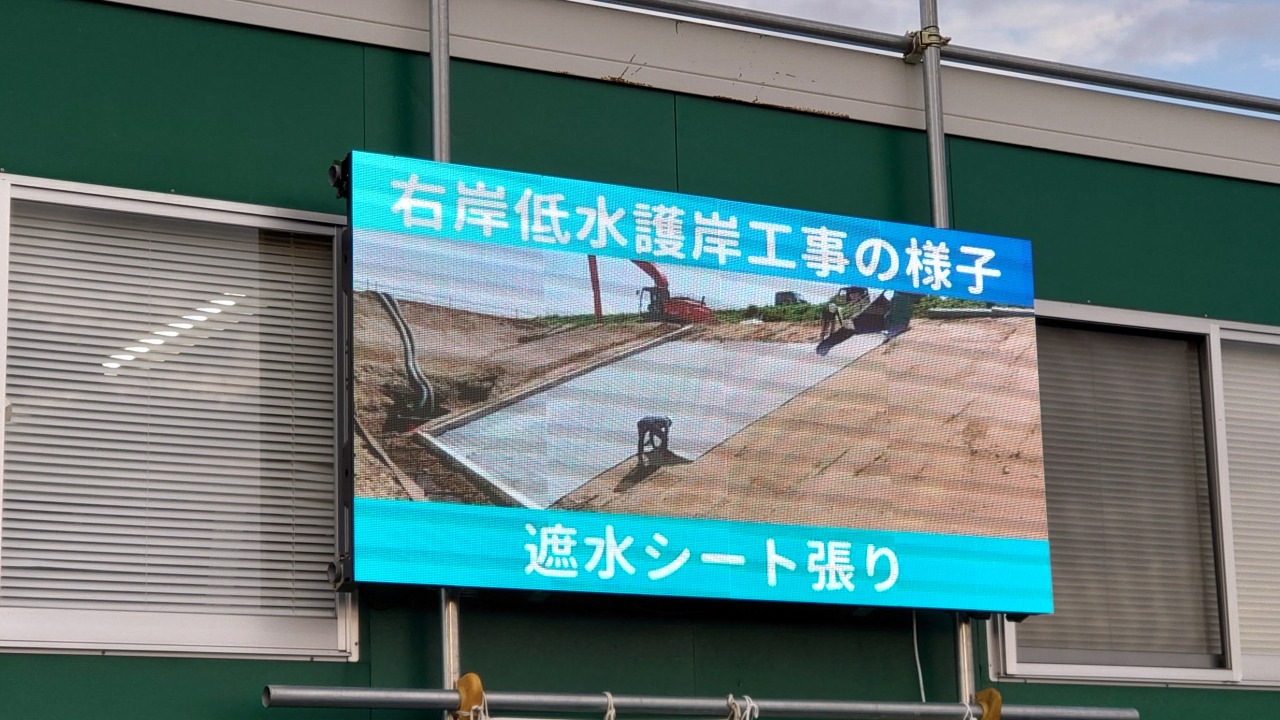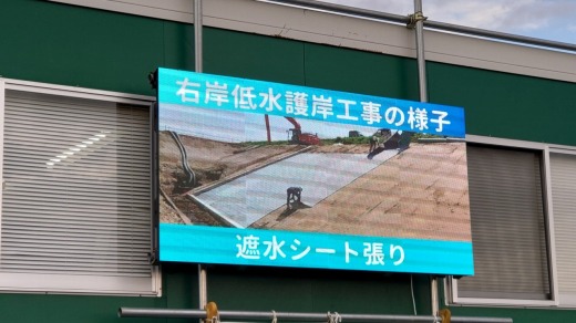 この工事は繰越しとなり、年度をまたいで右岸側の低水護岸工を増工で行うことになりました。