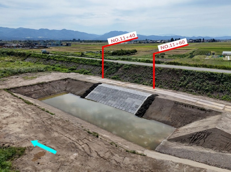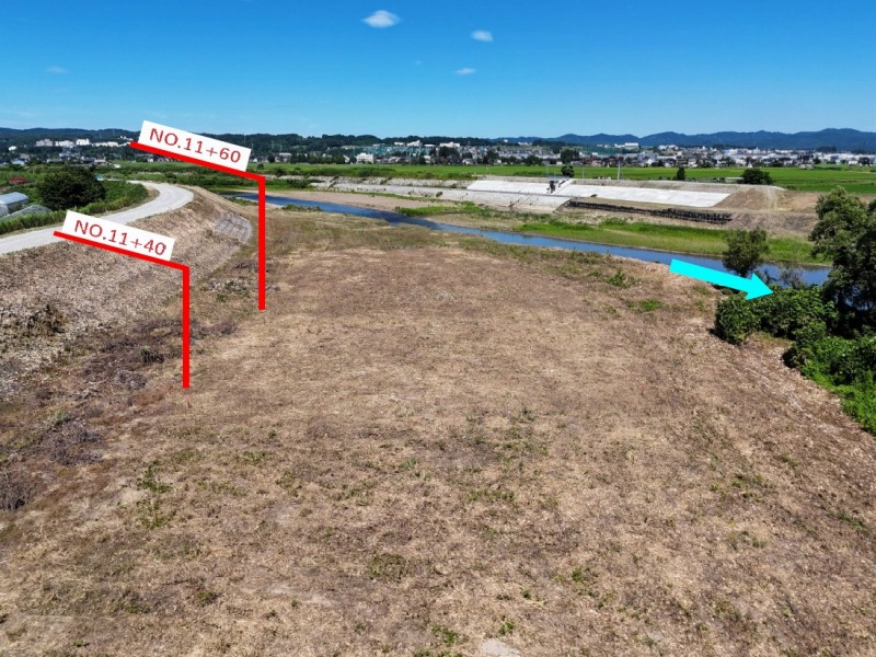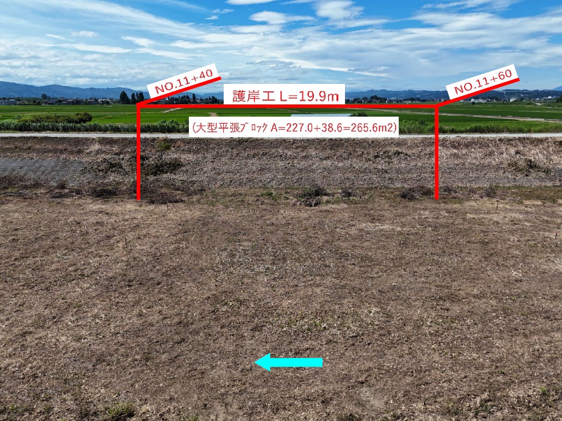 右岸側からNo.40+99.7(起点)・No.42+40.1(終点)方向を望む