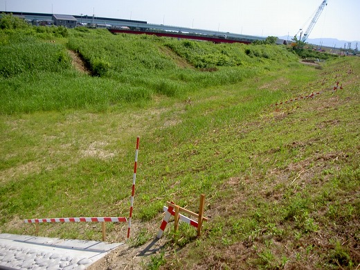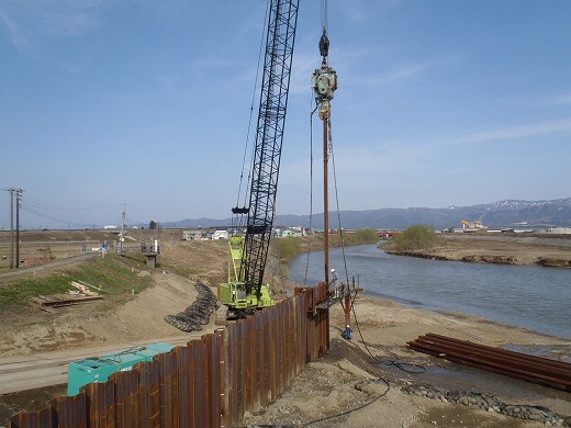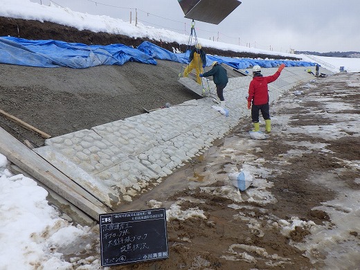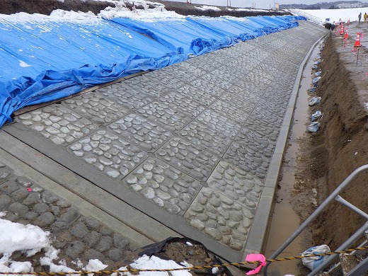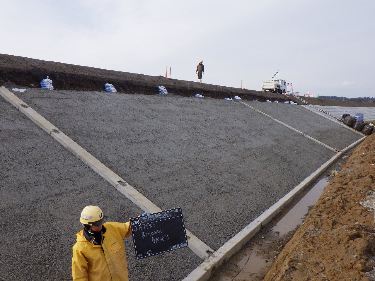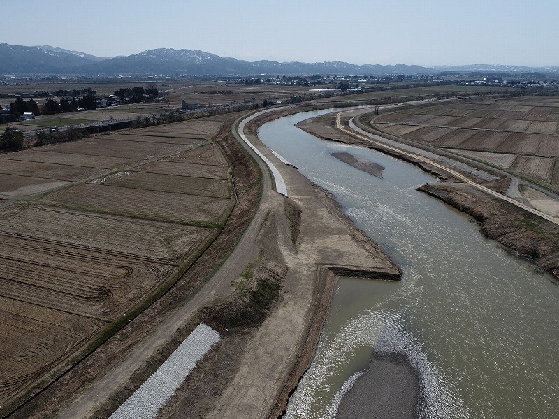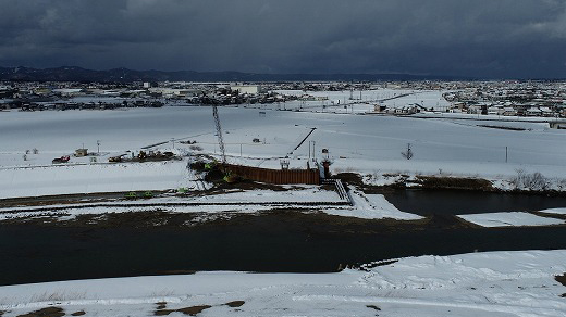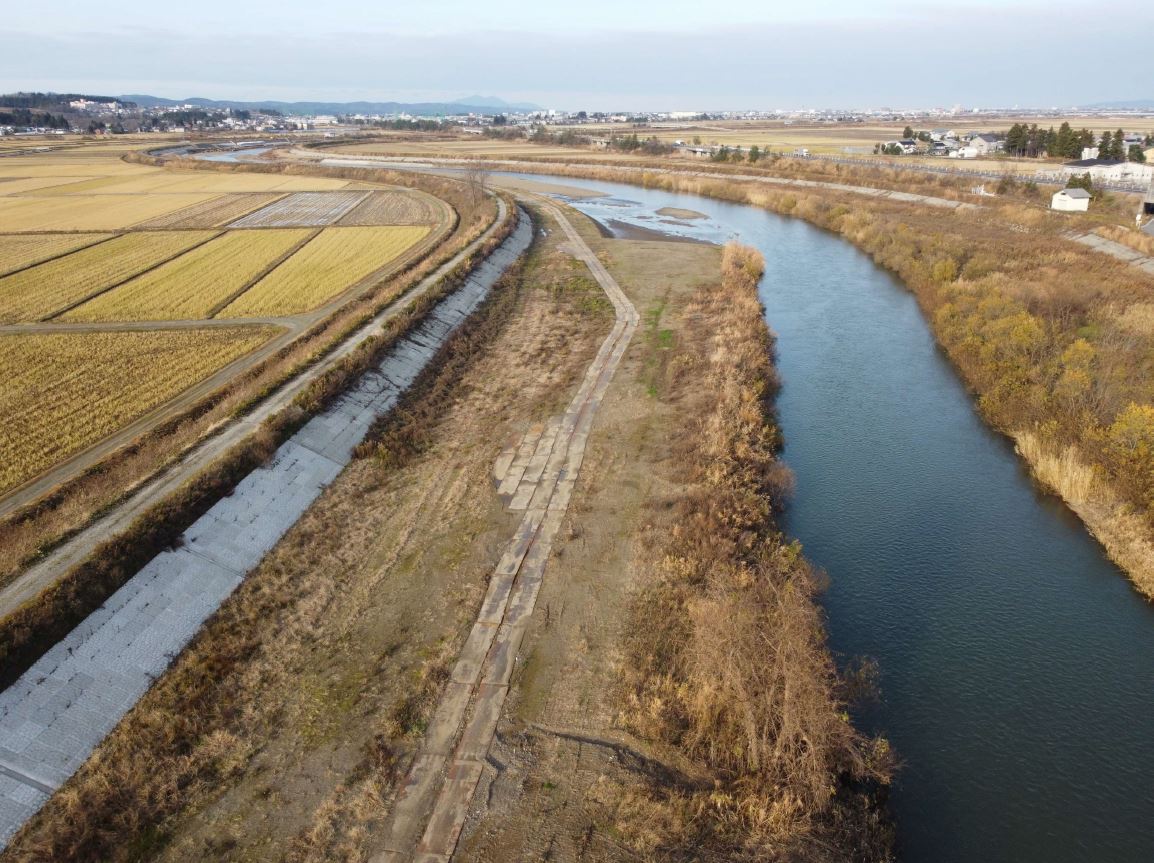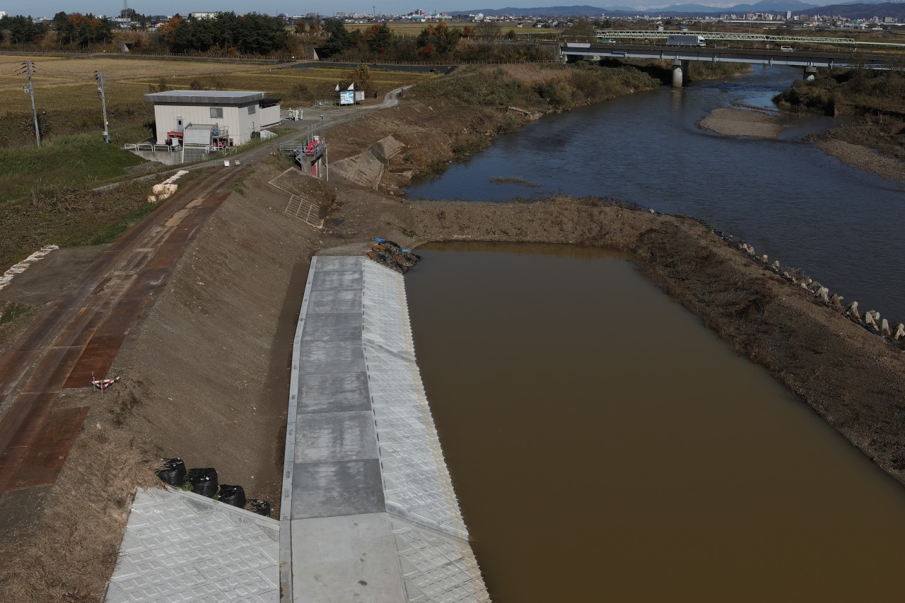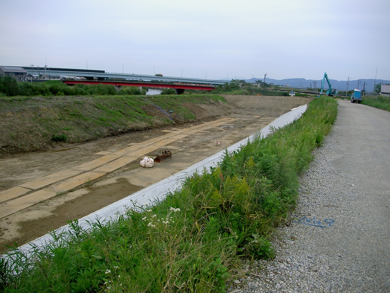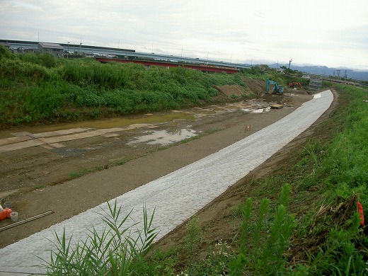この工事は繰越しとなり、年度をまたいで右岸側の低水護岸工を増工で行うことになりました。
