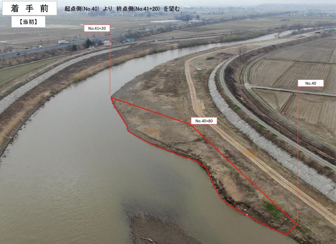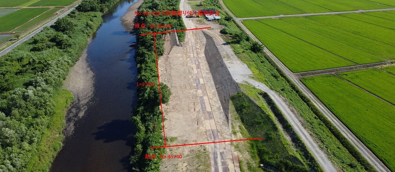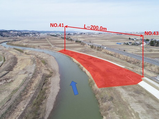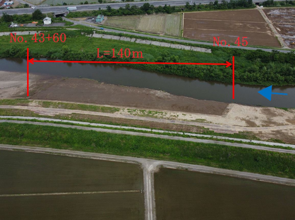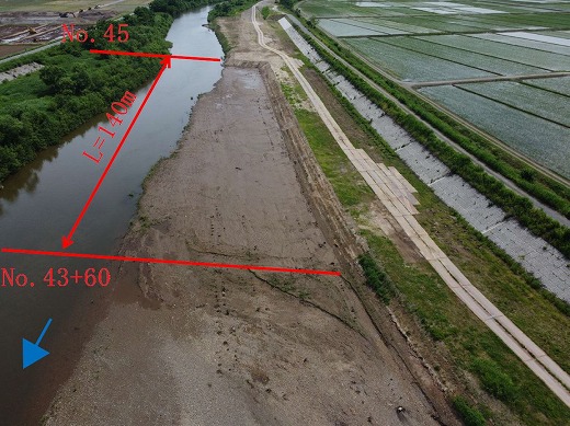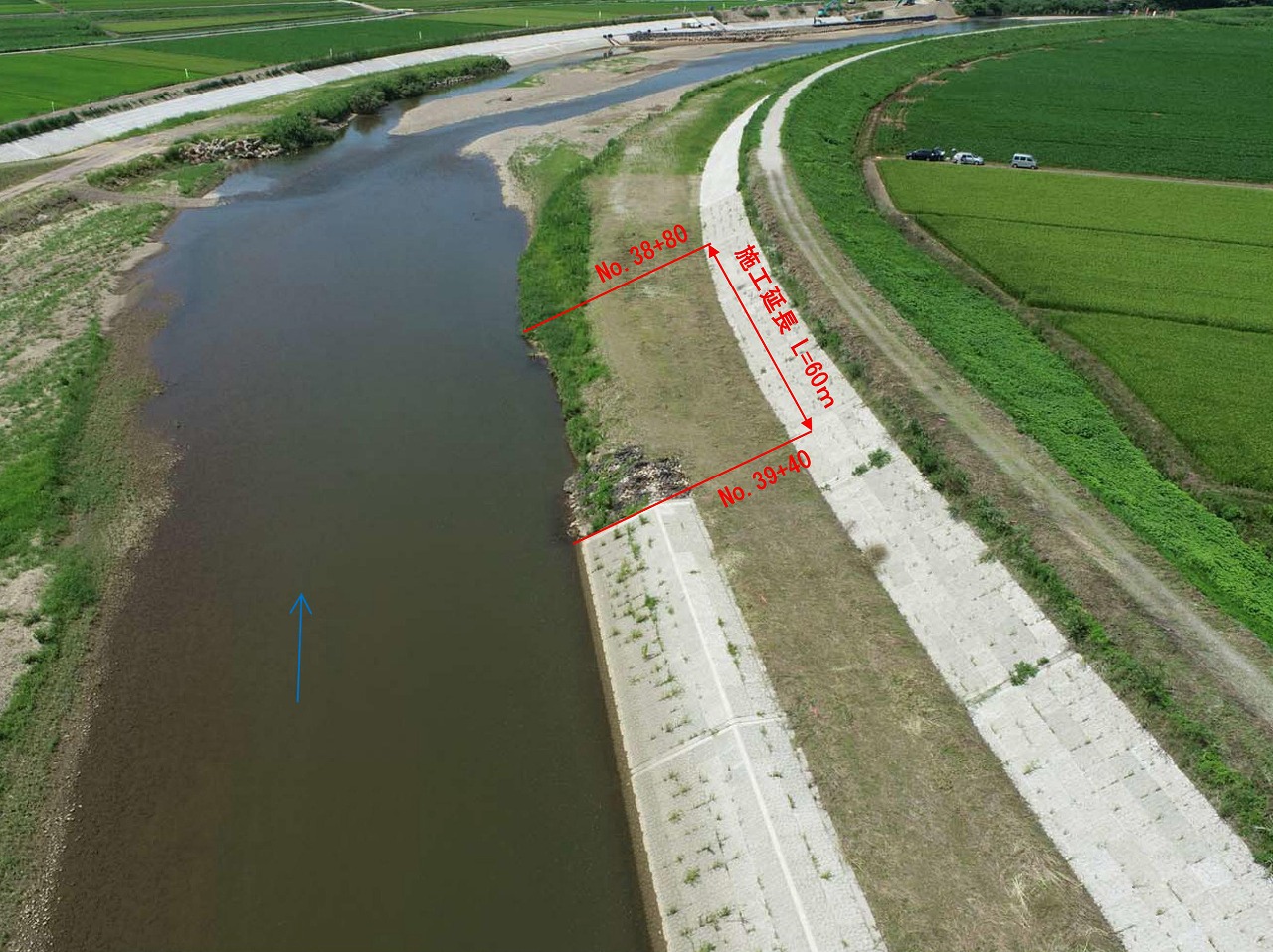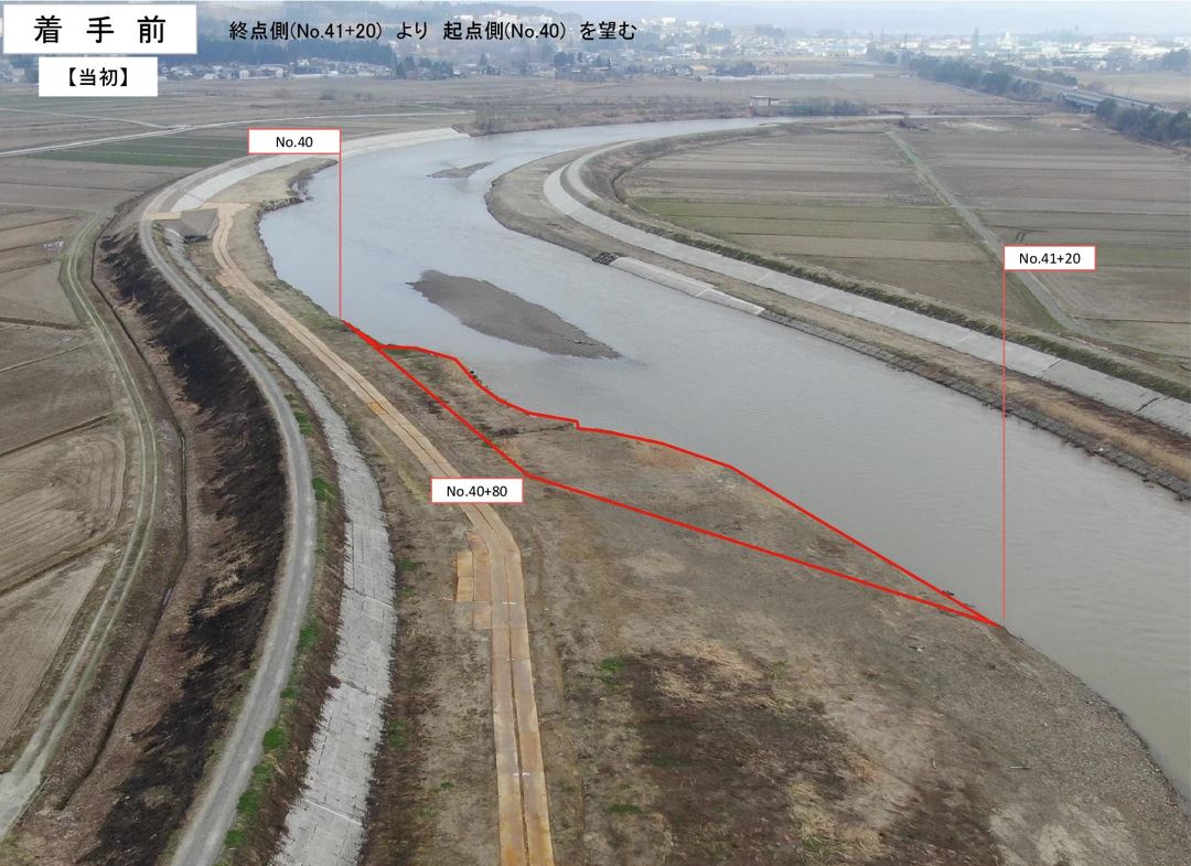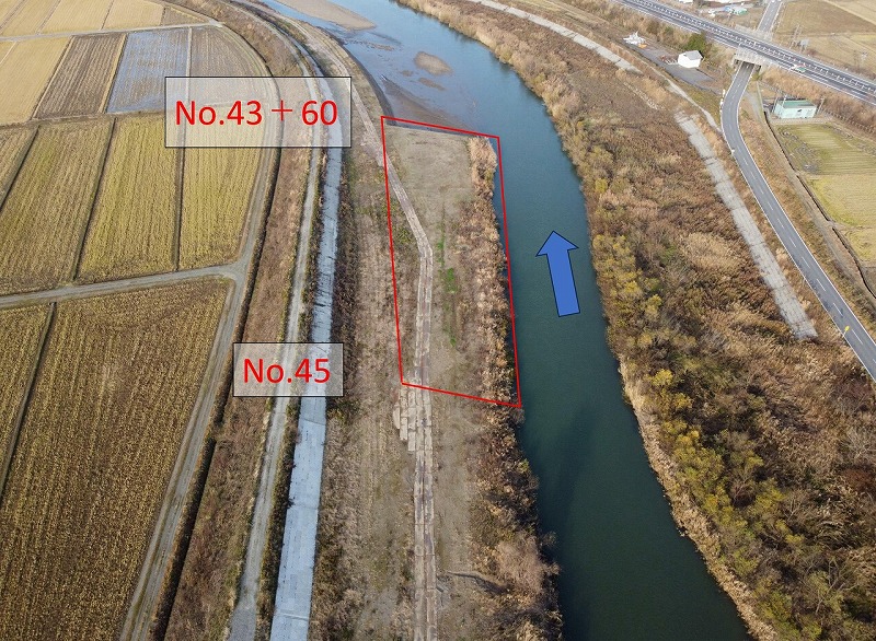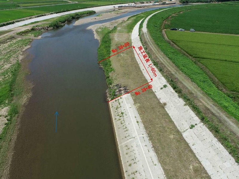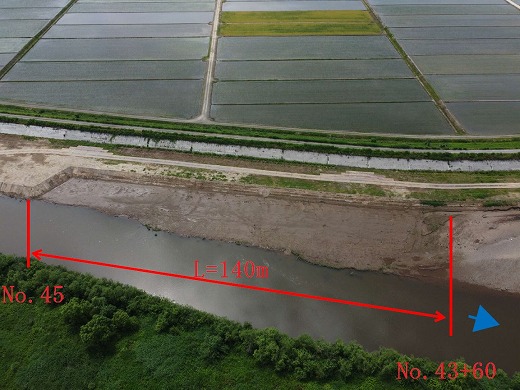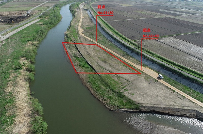 右岸側からNo.40+99.7(起点)・No.42+40.1(終点)方向を望む