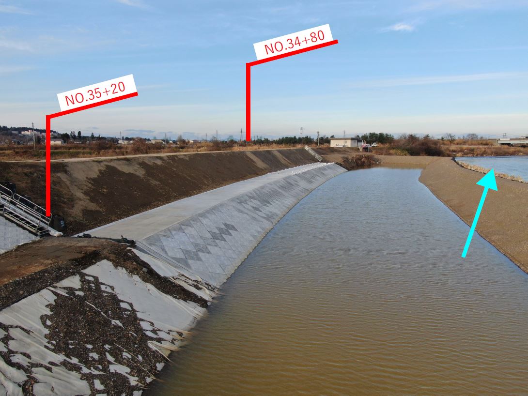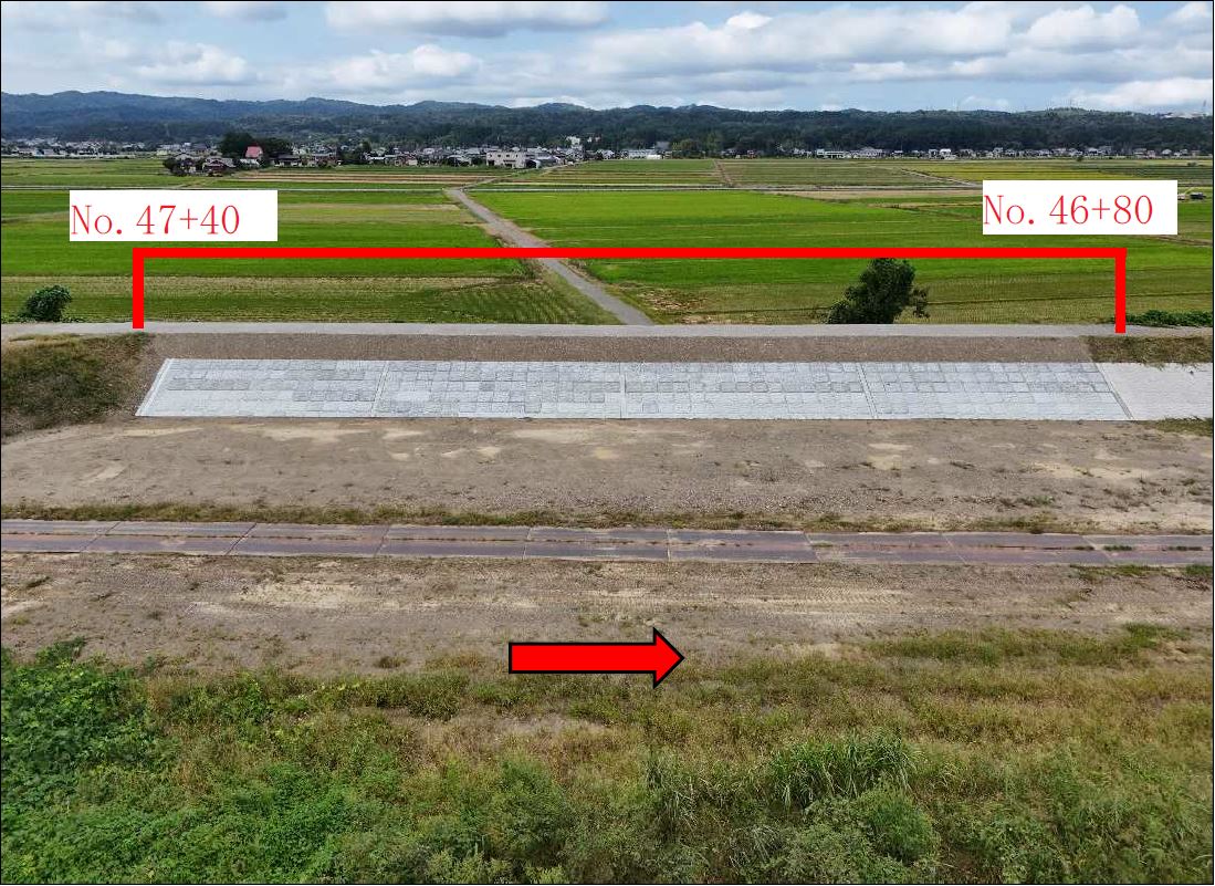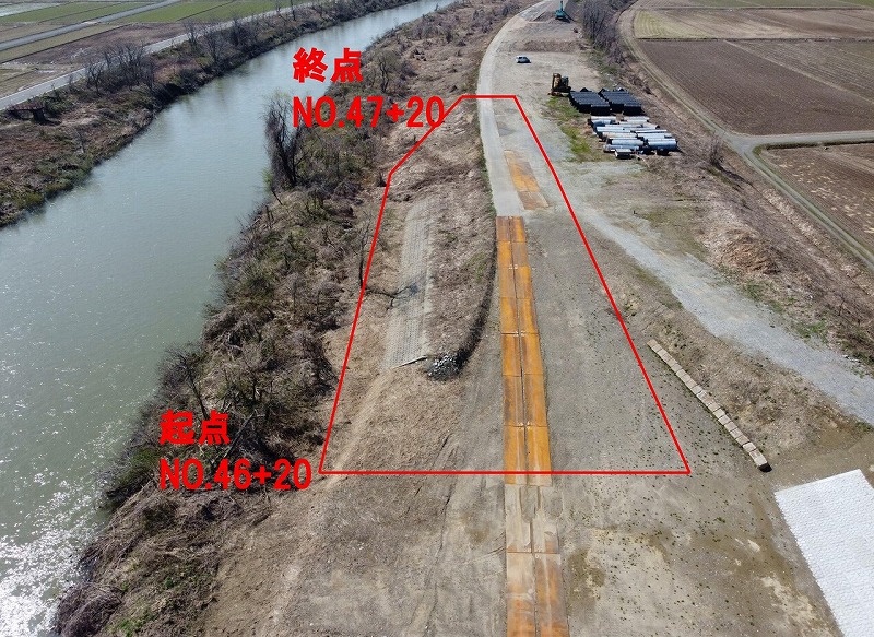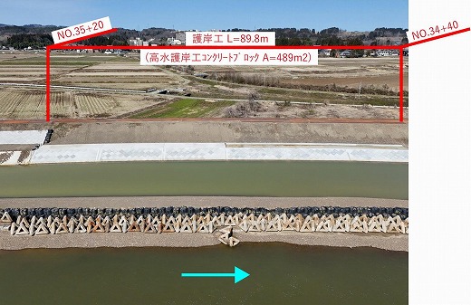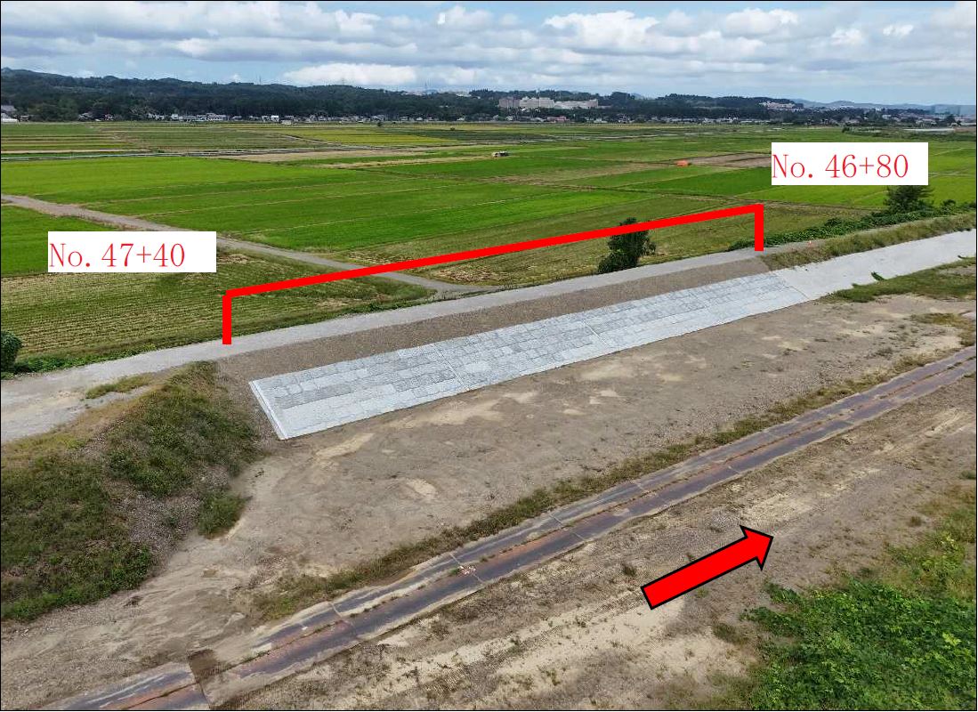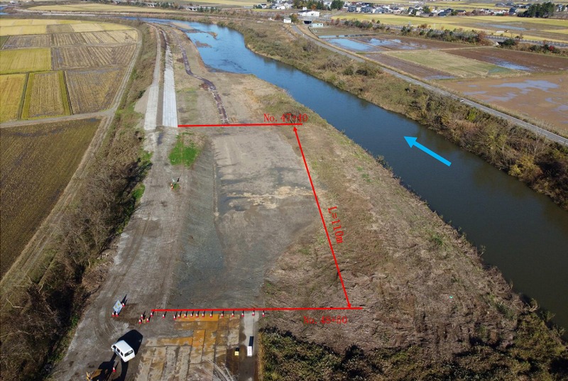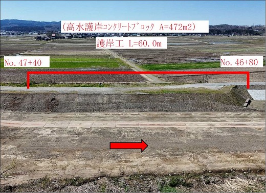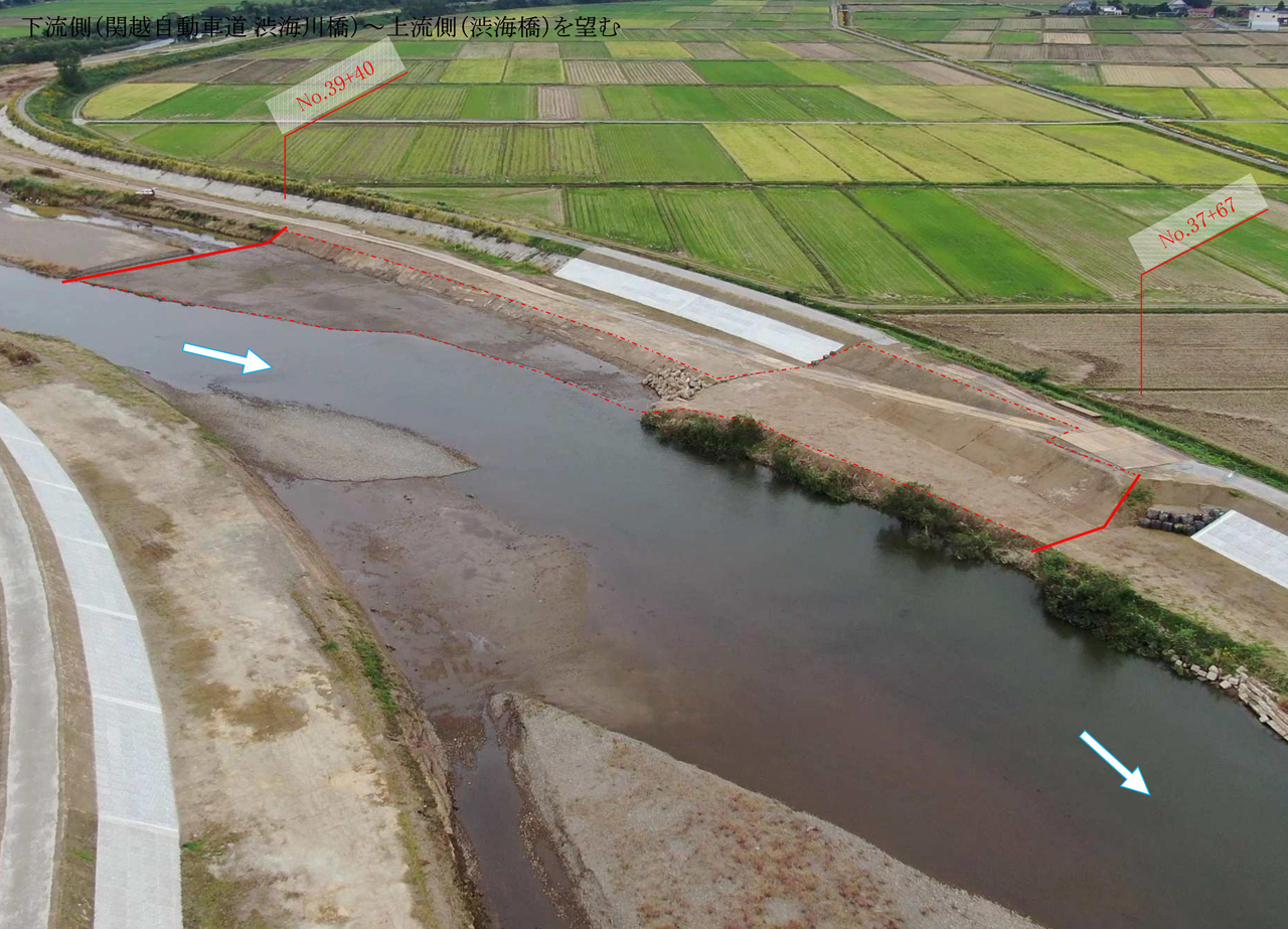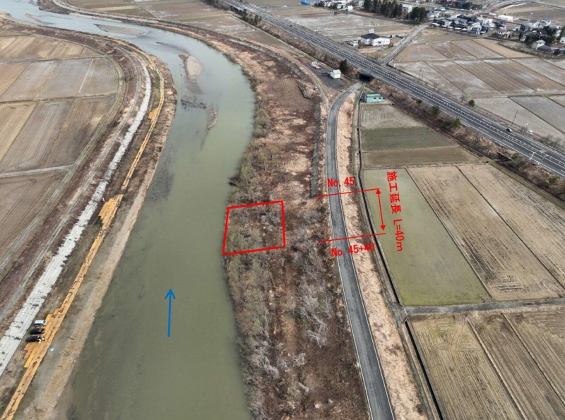 右岸側からNo.40+99.7(起点)・No.42+40.1(終点)方向を望む