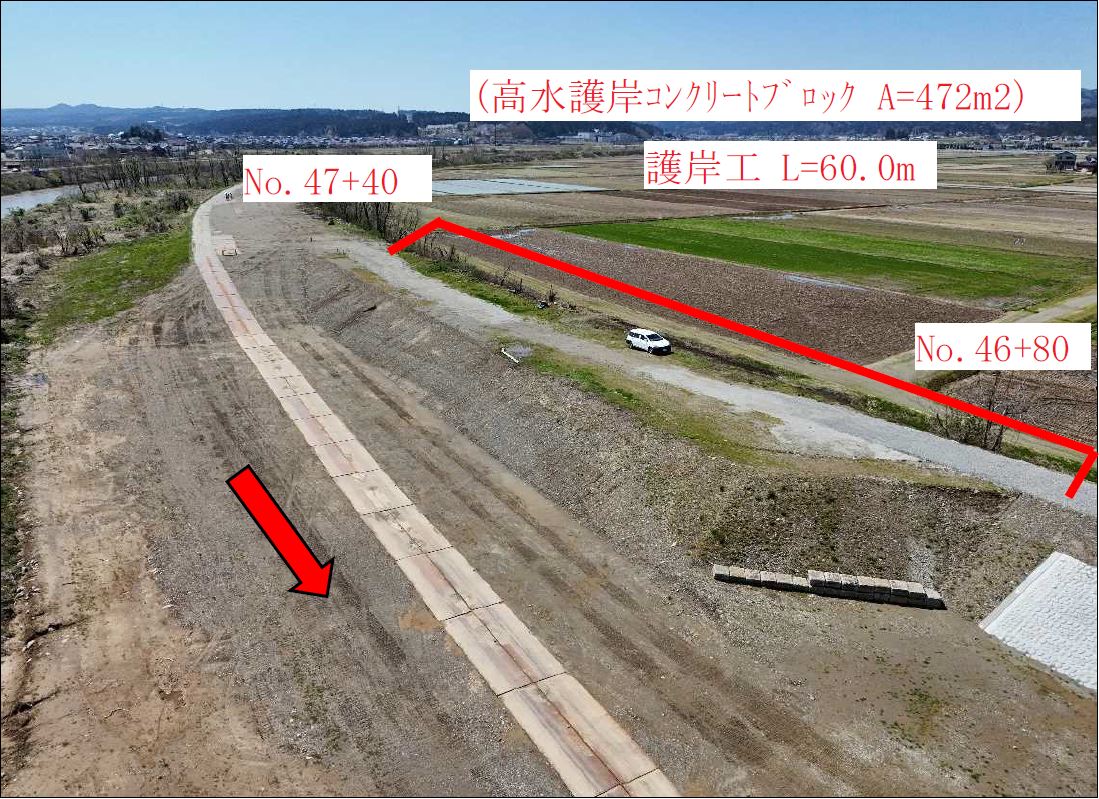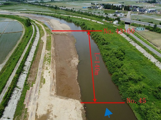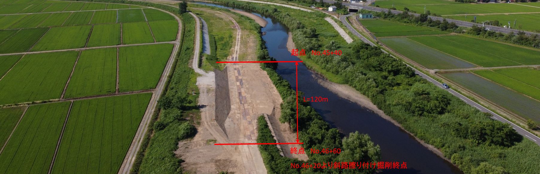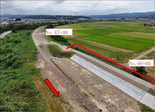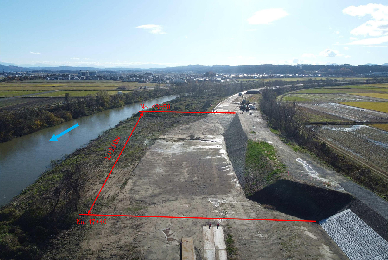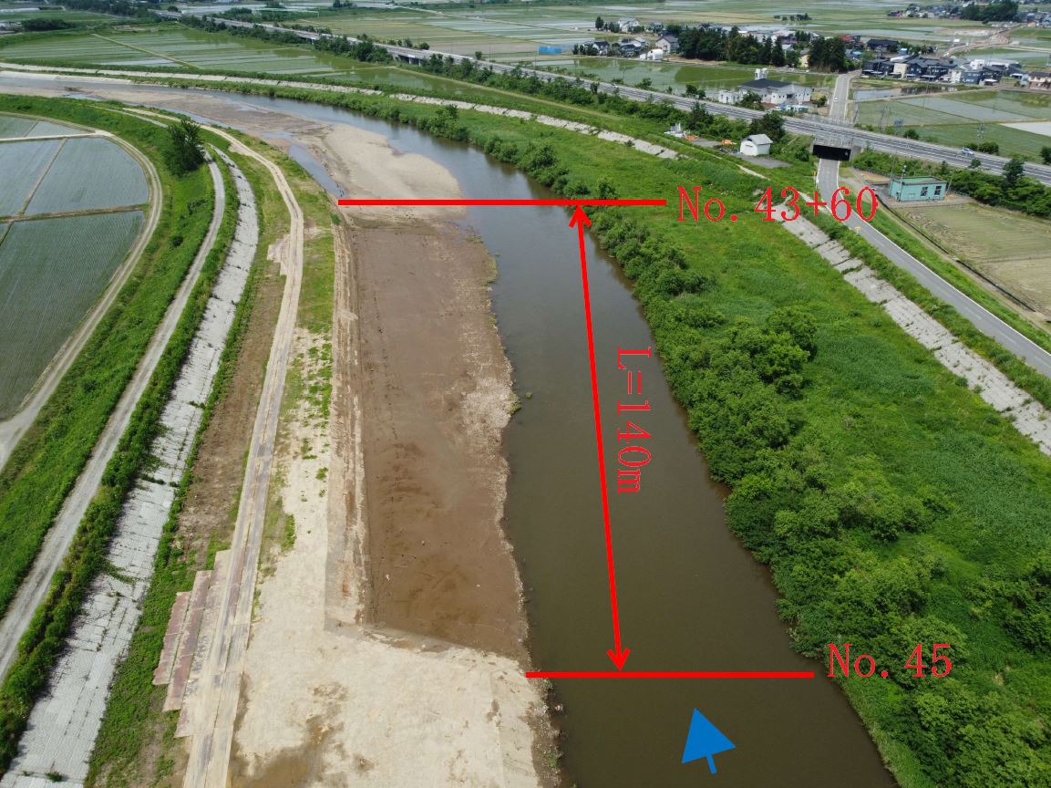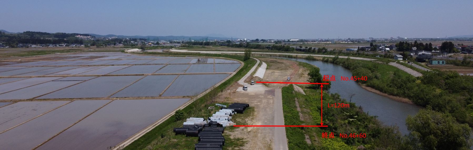 右岸側からNo.40+99.7(起点)・No.42+40.1(終点)方向を望む