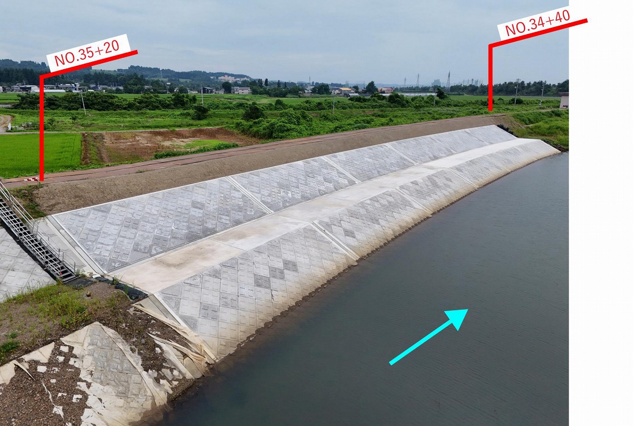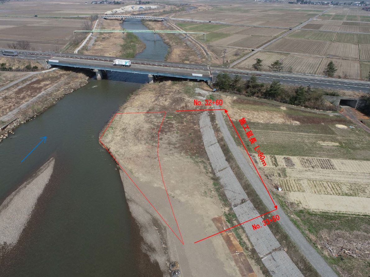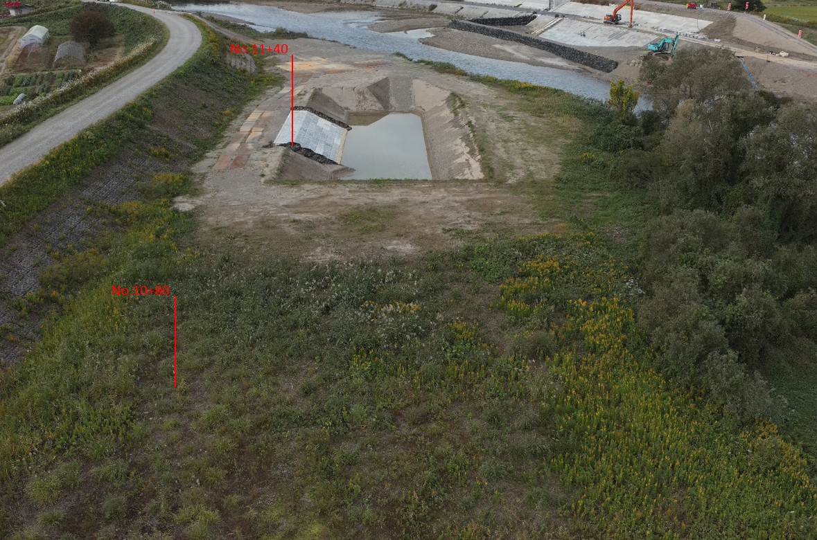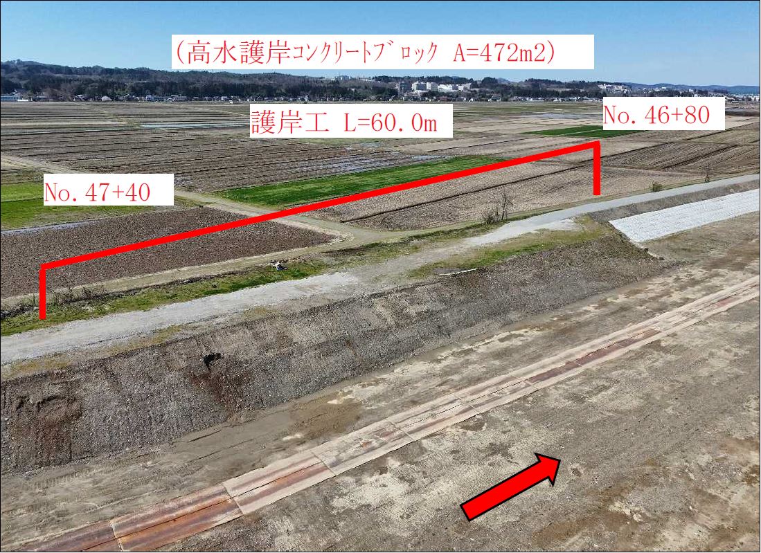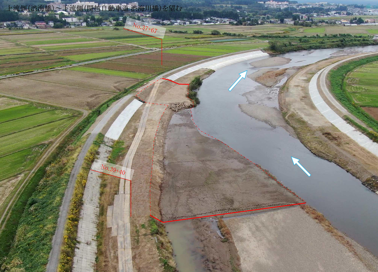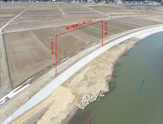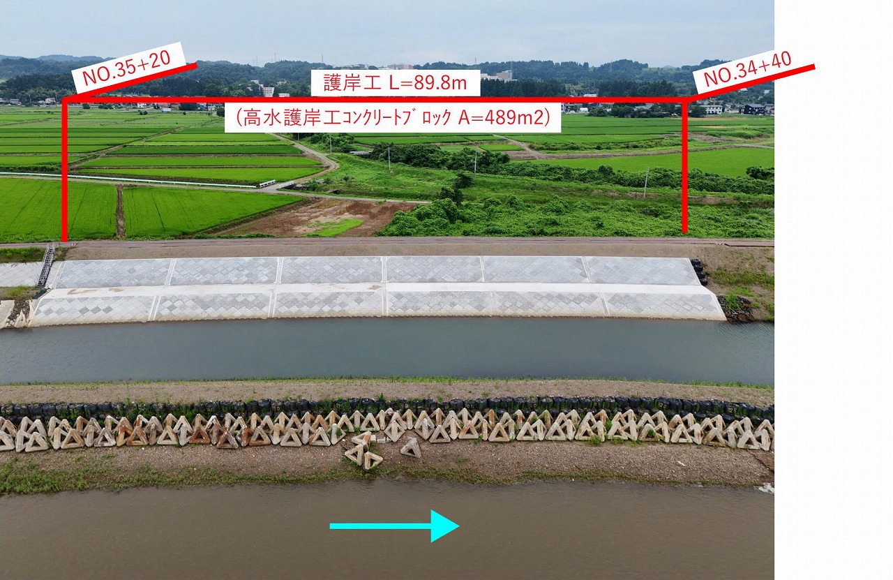右岸側からNo.40+99.7(起点)・No.42+40.1(終点)方向を望む