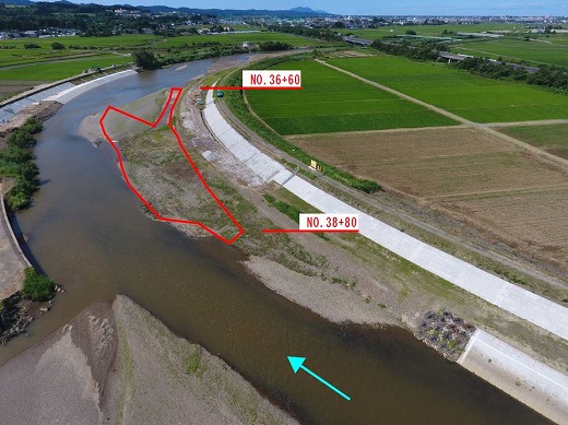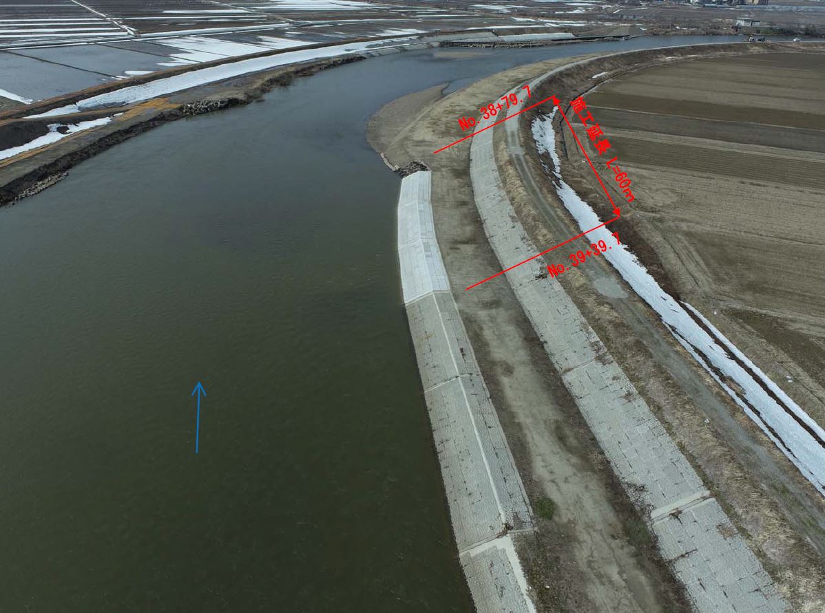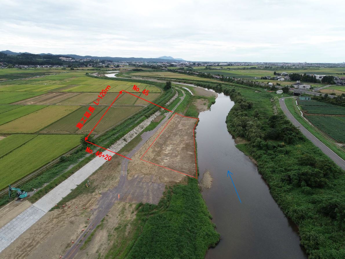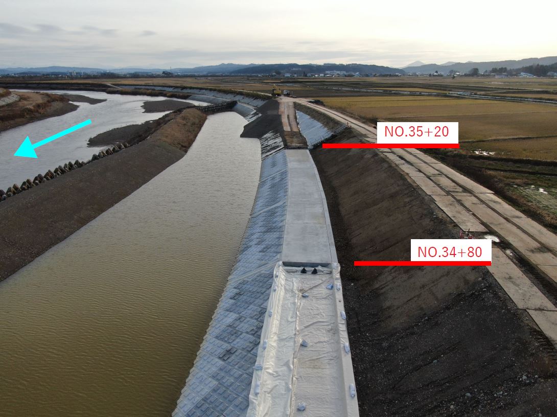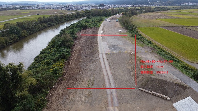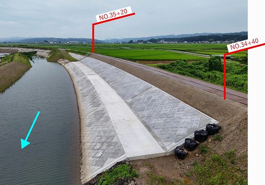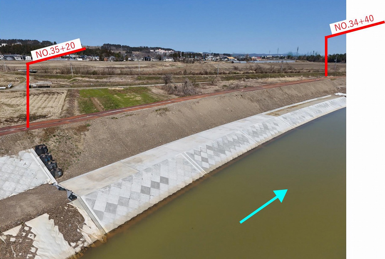 右岸側からNo.40+99.7(起点)・No.42+40.1(終点)方向を望む