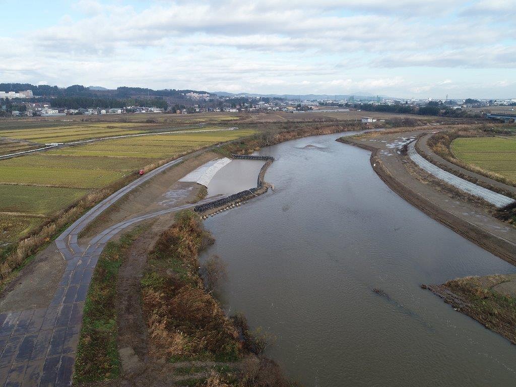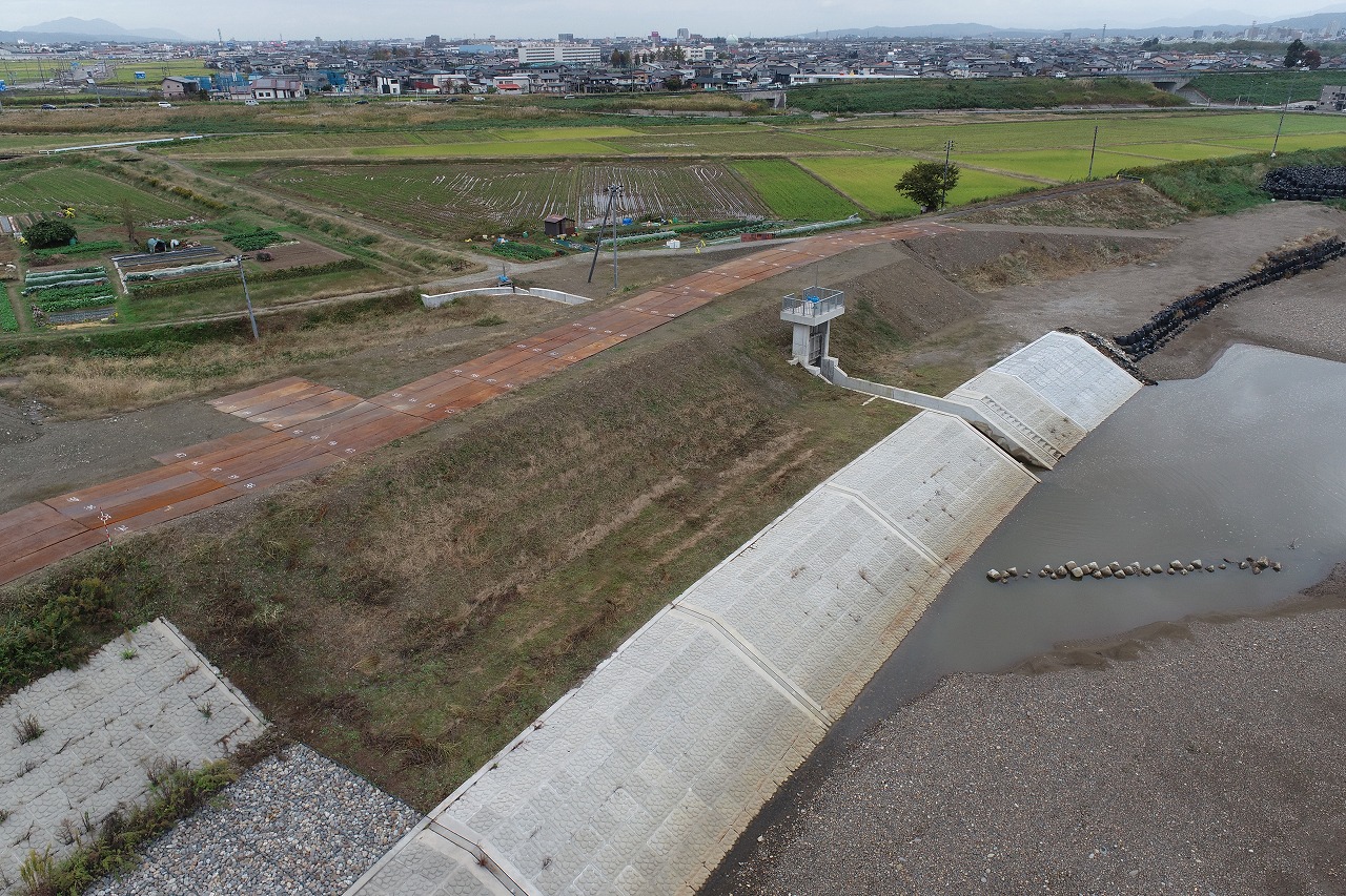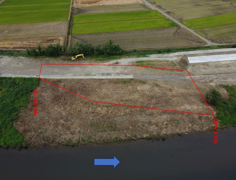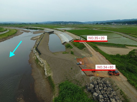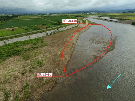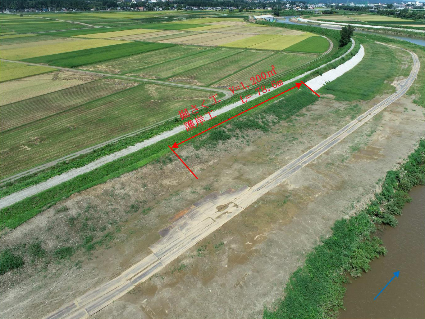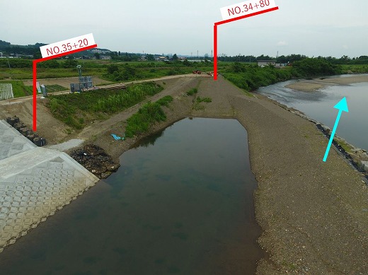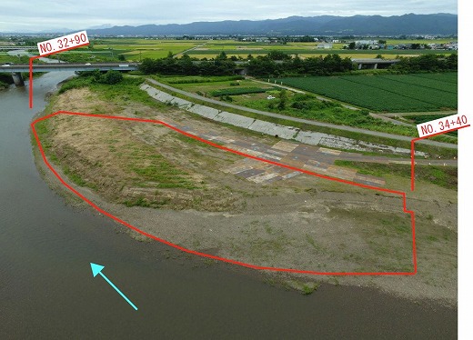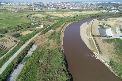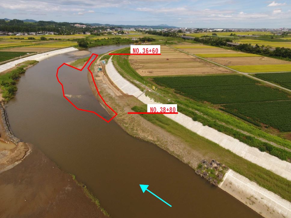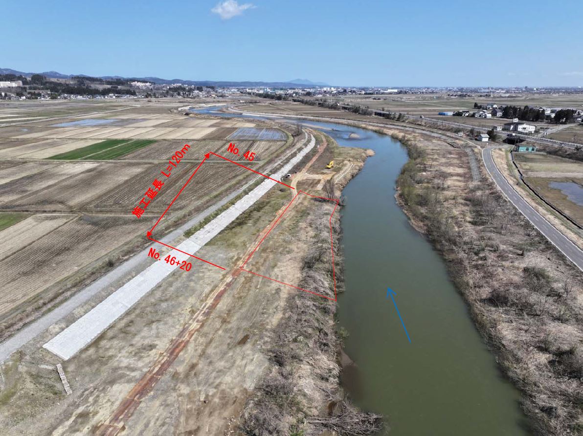 右岸側からNo.40+99.7(起点)・No.42+40.1(終点)方向を望む