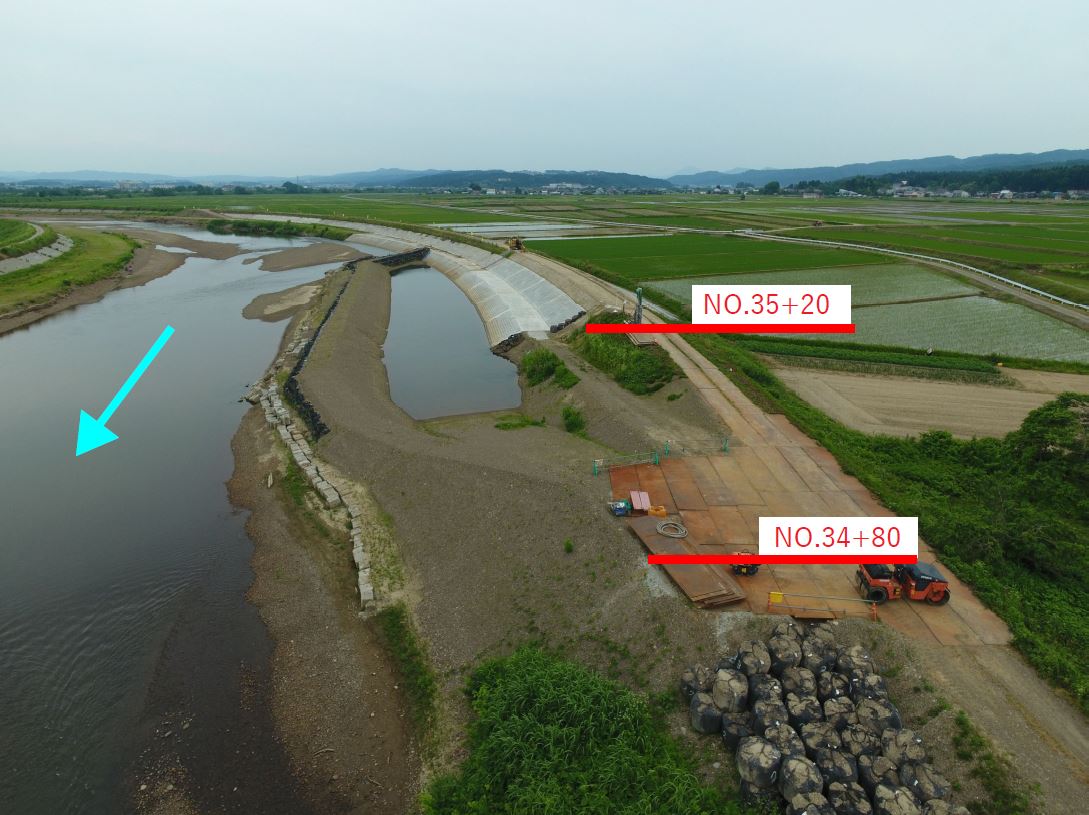 上流工区 NO.36+60~NO.38+80 方向を望む