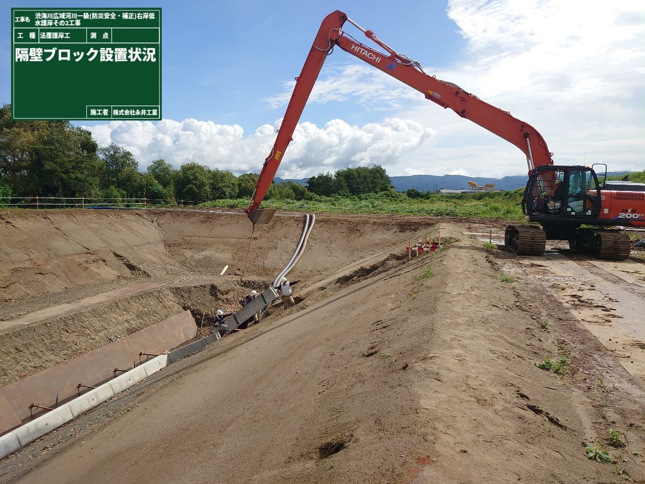 一級河川渋海川 防安(3か年)中小プロ・重点右岸高水護岸工事 株式会社永井工業