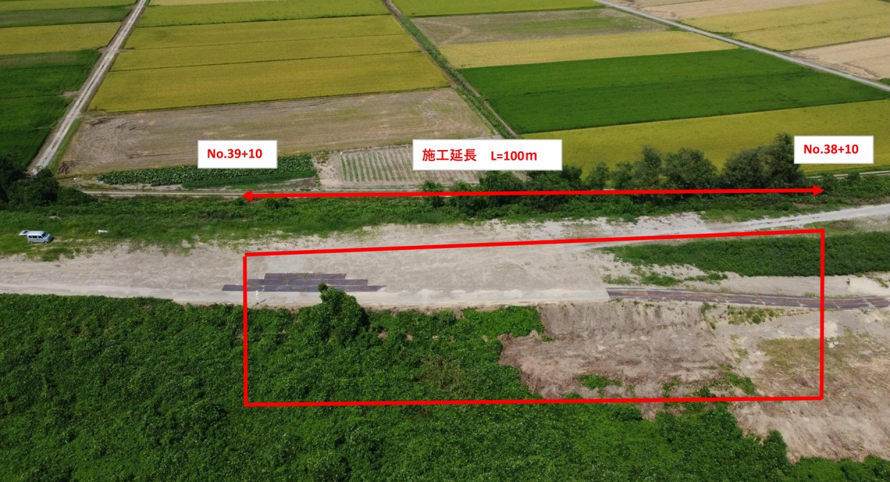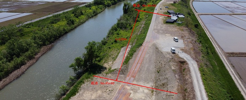 真上からNo.40+99.7(起点)・No.42+40.1(終点)方向を望む