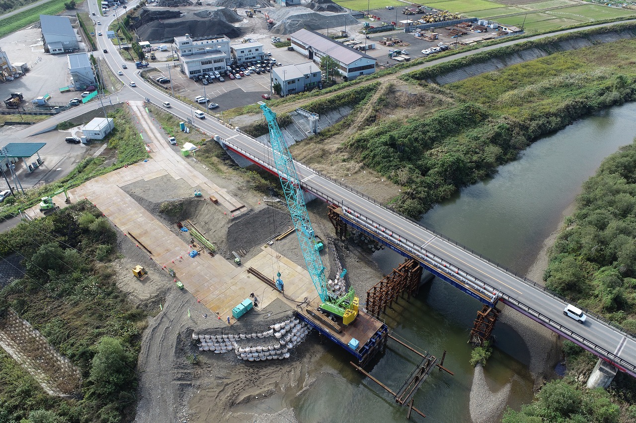 一級河川渋海川(永盛橋)県単河川整備 迂回路仮橋撤去工事 株式会社大石組