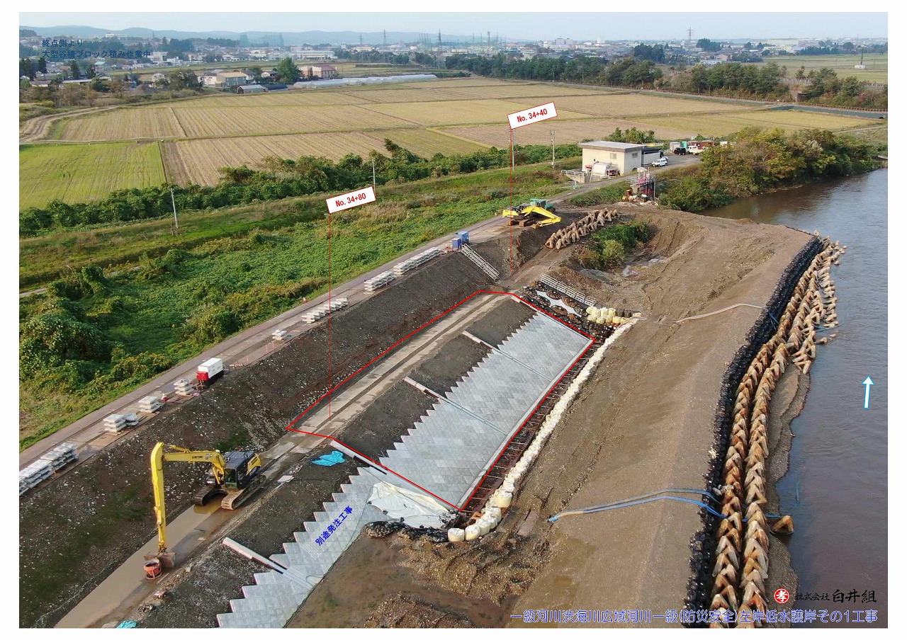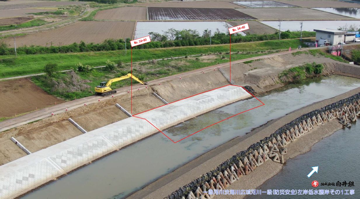 渋海川防安(3カ年)中小プロ・重点右岸高水護岸その1工事 株式会社白井組