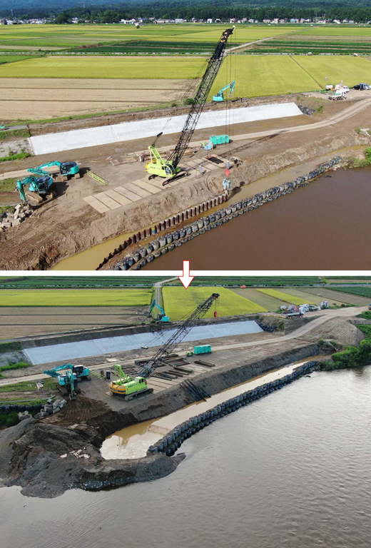 渋海川防安(3か年)掘削・重点 左岸築堤護岸・構造物撤去工事 株式会社大石組