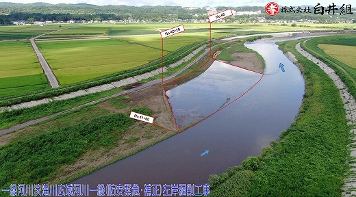 一級河川渋海川広域河川一級(防安緊急・補正)左岸掘削工事 株式会社白井組