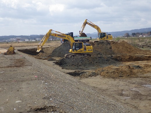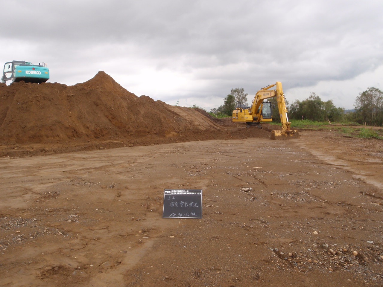 ICT土工にて、掘削・土砂搬出作業を行っております。