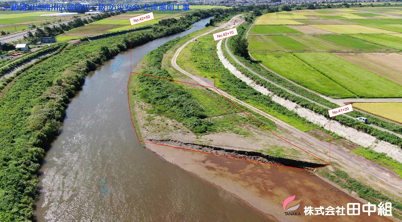 一級河川渋海川広域河川一級(防災安全)左岸掘削工事 株式会社田中組