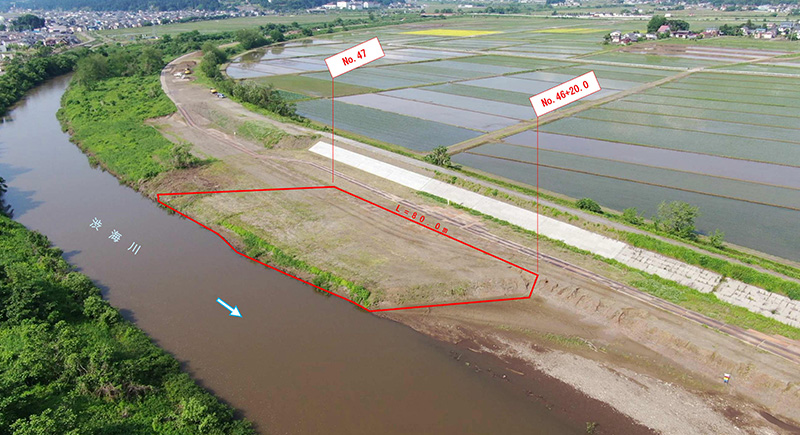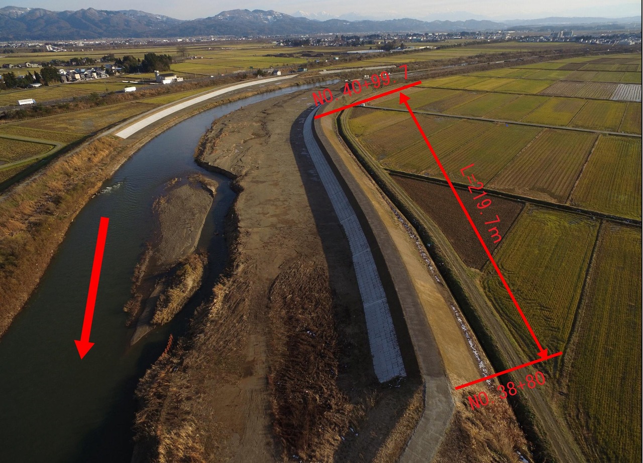 渋海川広域河川一級(防安緊急・補正)左岸高水護岸その1工事 株式会社中越興業