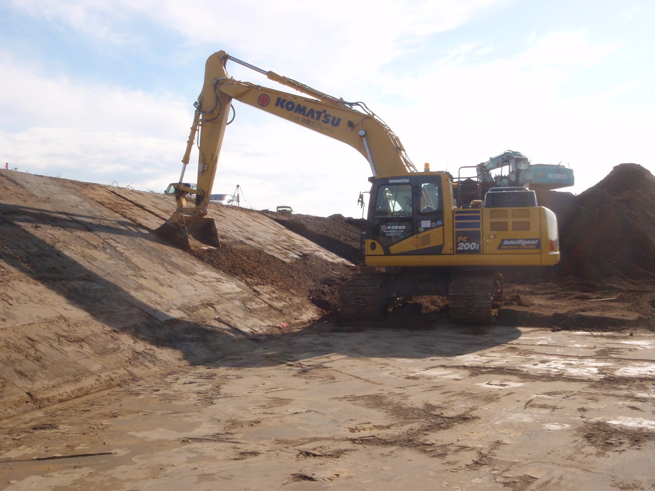 現在は、既設護岸撤去完了し、掘削・土砂撤去施工中です。