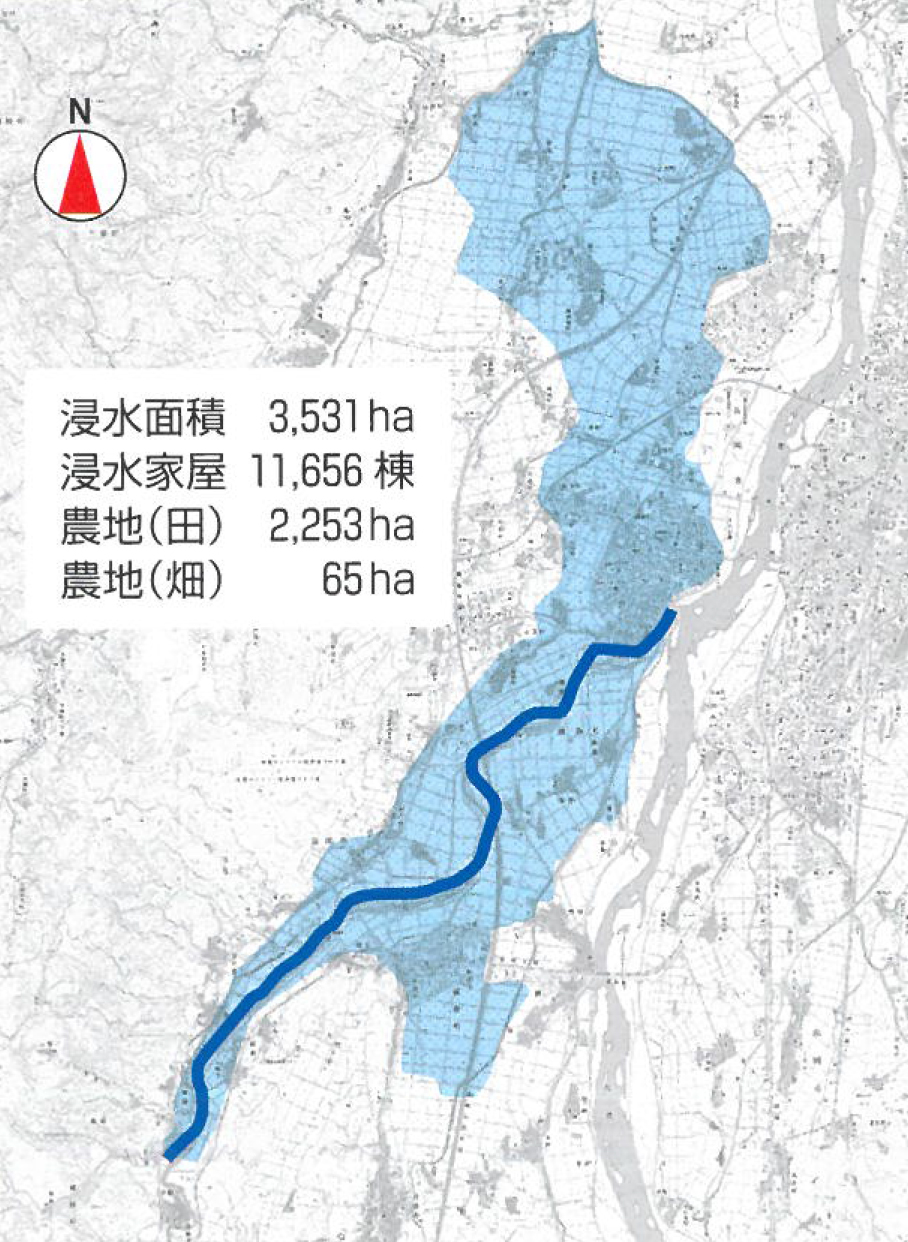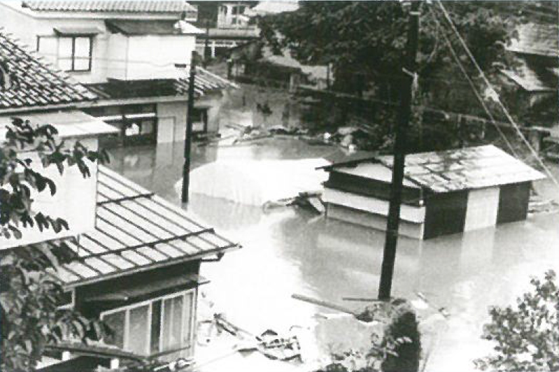 昭和53年6月の梅雨前線豪雨により溢水・破堤が生じ、