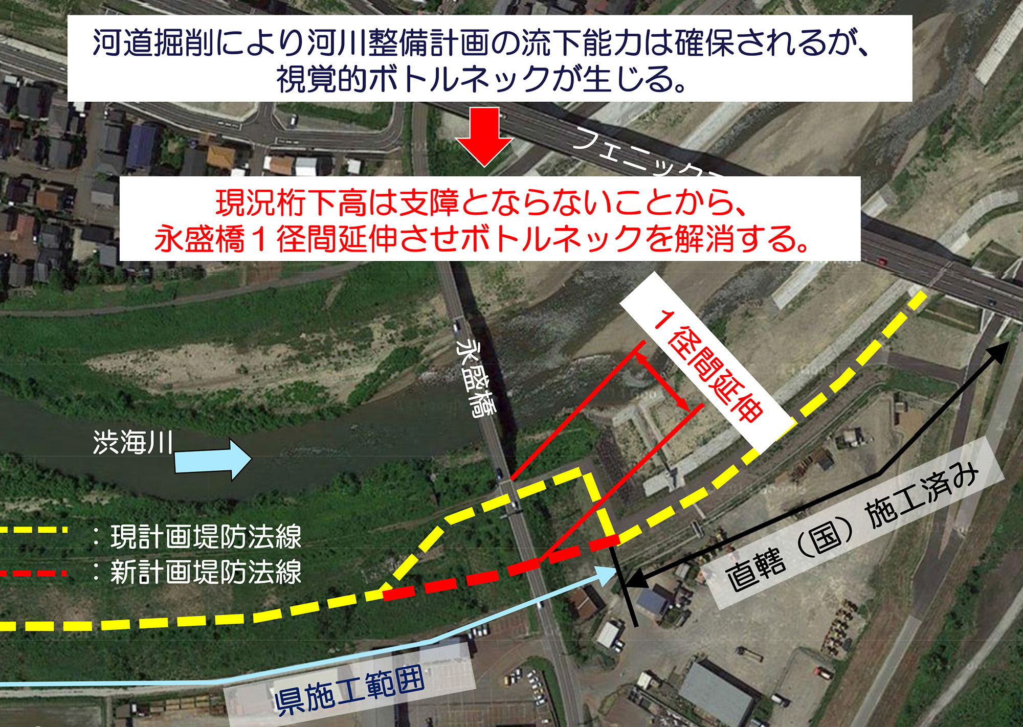 渋海川の河川改修に伴い、永盛橋を1径間延伸する「永盛橋延伸計画」のひとつとして、