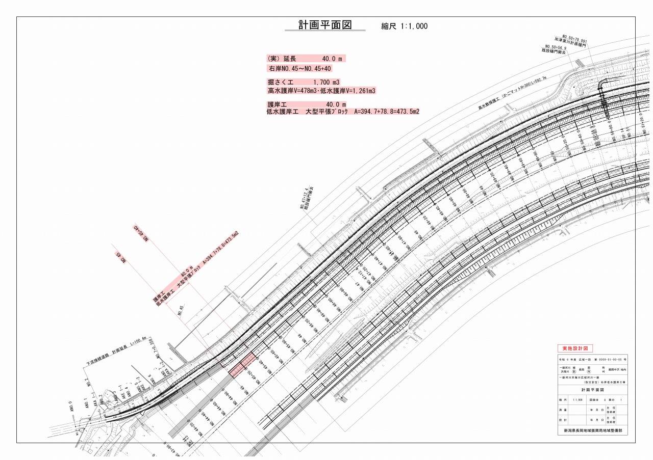 渋海川広域河川一級(防安緊急・補正)左岸高水護岸その1工事 株式会社中越興業